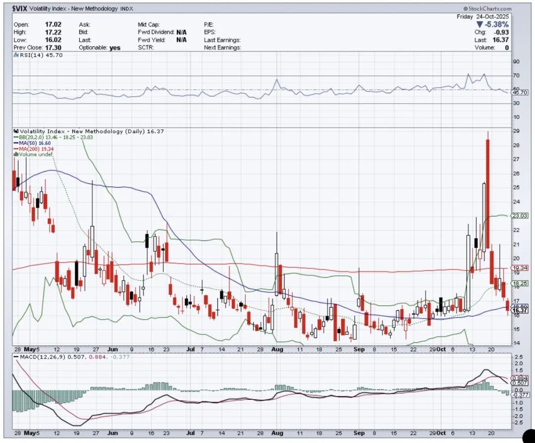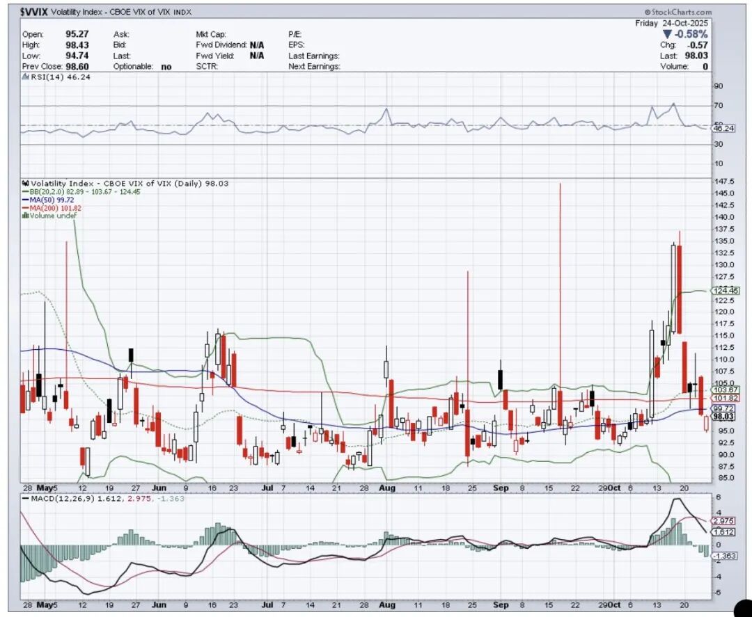 VIX/VVIX都出波段新低。 VIX收阴收跌,VVIX收红阳线。