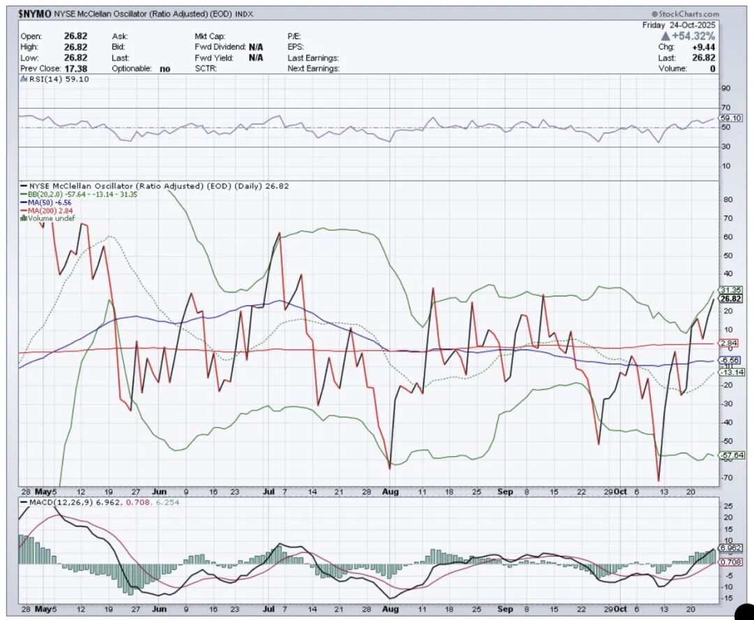 3. NYMO:NYSE McClellan Oscllator用纽NYSE的上涨家数和下跌家数来判断市场(1)计算(上涨家数-下跌家数)的19日和30日指数移动平均;(2)绘制(19日指数平均-39日移动平均)的计算结果