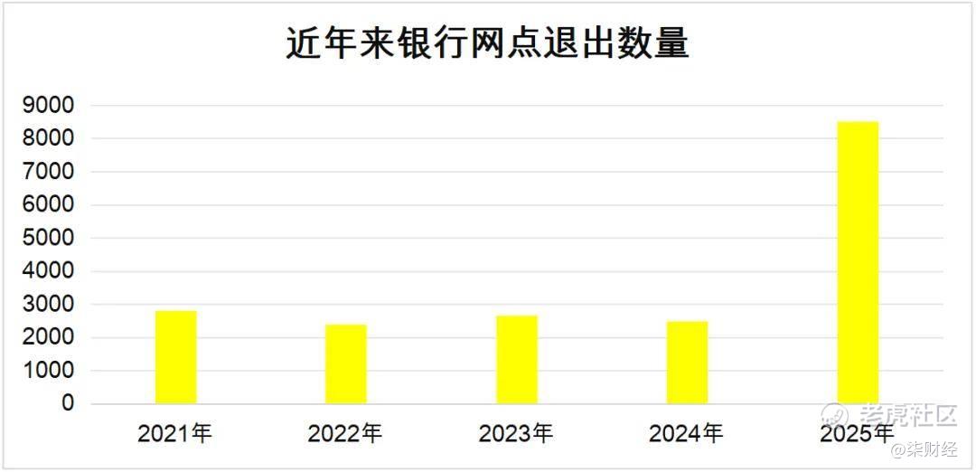 相关数据显示,2023年商业银行获准裁撤、退出的网点达2649家,2024年这一数字略有回落至2483家,2025年再度迎来高峰。