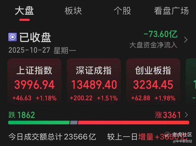 10月27日,A股市场延续强势格局,大盘最高点距离4000点,仅有0.93点,看来突破4000点,或成必然,但是,能不能保住,就不好说了,突破4000点,这个心理价位,应该是很多的资金的共同选择。看指数大幅放量就知道。下面,我们具体来看一下,今天的盘面走势: