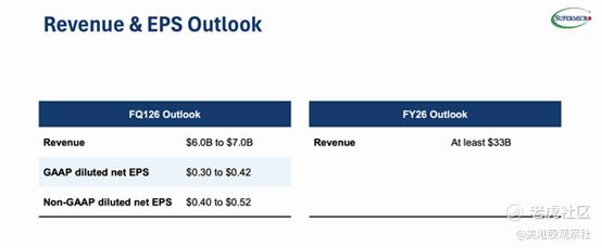 “超微电脑新推出的AI液冷解决方案获得了出色的客户响应,众多核心客户正推进跨季度、大规模的部署计划。我们看到客户需求持续攀升,市场份额也在不断扩大。因此,我们重申2026财年营收至少达到330亿美元的目标,且有望超出该预期。”