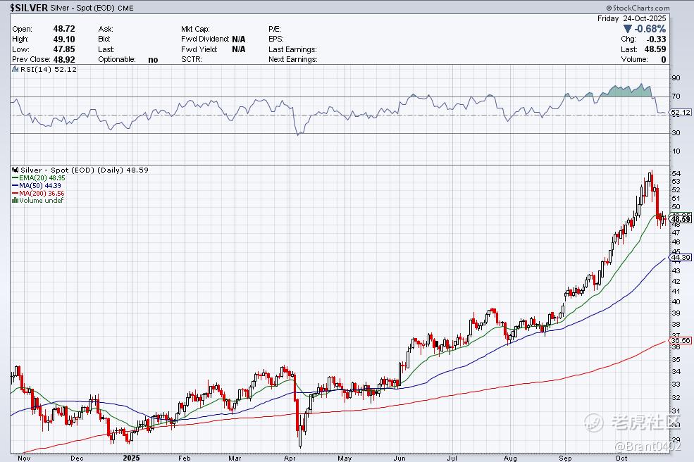 从技术面看,白银在10月创出高点后出现调整,但仍稳稳运行50日均线上方。短线或有震荡,但中长期仍具上行动能。