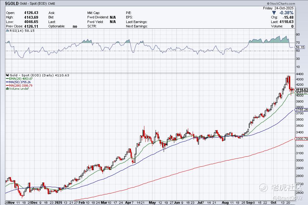自今年初以来,黄金上涨约55%,白银涨幅更是高达67%,双双创下历史新高。10月中旬,黄金一度突破每盎司4300美元关口,白银则冲上每盎司54美元的高点,成为今年全球市场中表现最强的资产之一。