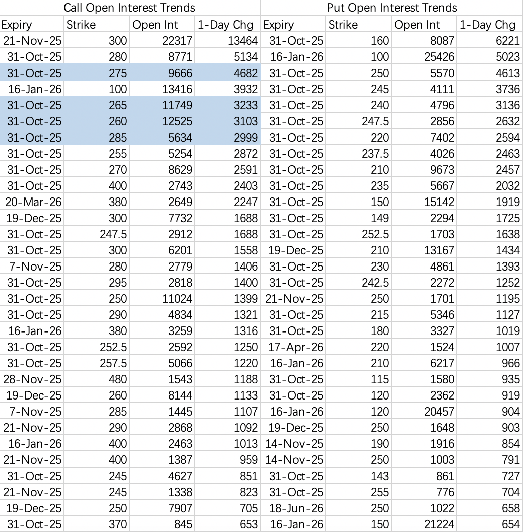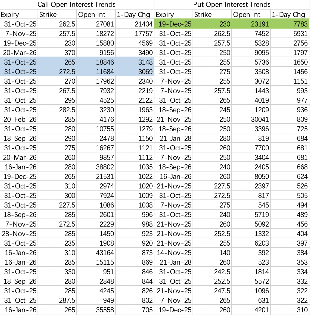 周五机构sell call265 $AMD 20251031 265.0 CALL$ 和260 $AMD 20251031 260.0 CALL$ ,对冲买入275 $AMD 20251031 275.0 CALL$ 和285 $AMD 20251031 285.0 CALL$