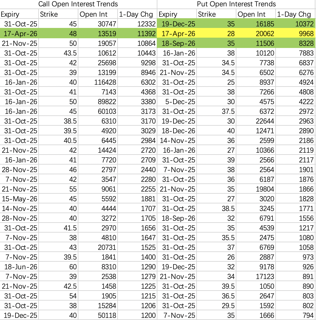 如何突破40是一个问题。目前sell put倾向于卖35,比如大单 $INTC 20251219 35.0 PUT$ $INTC 20260918 35.0 PUT$ 。