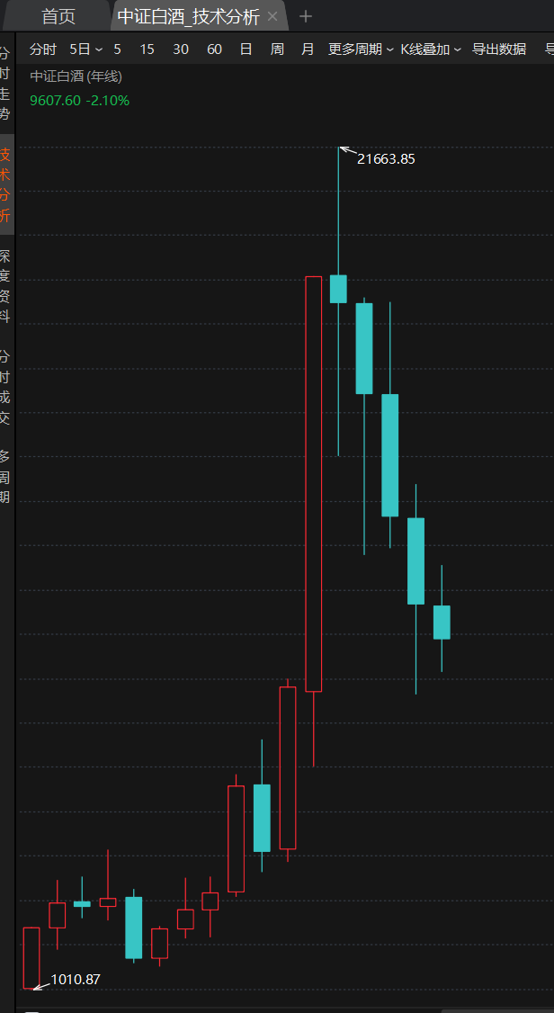 白酒年线5离岸跌了,历史上从来没有。