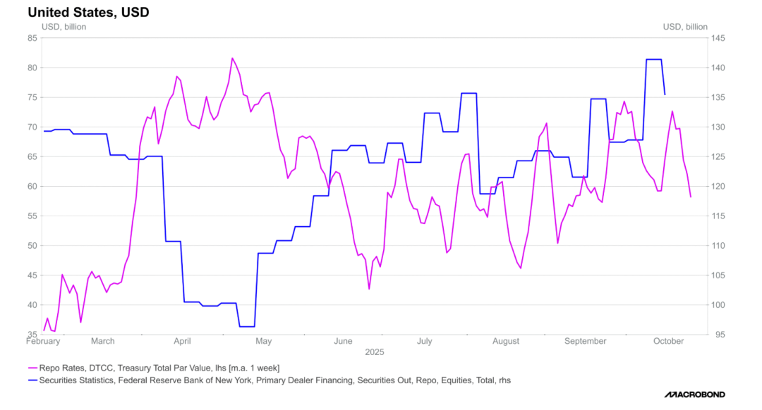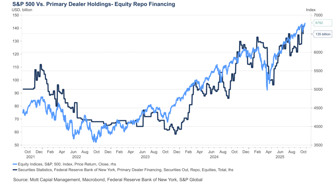 要确定流动性潮起潮落对风险资产价格的潜在影响绝非易事。然而,当更多交易量以国债形式通过回购市场时,股票回购活动往往会减少。
