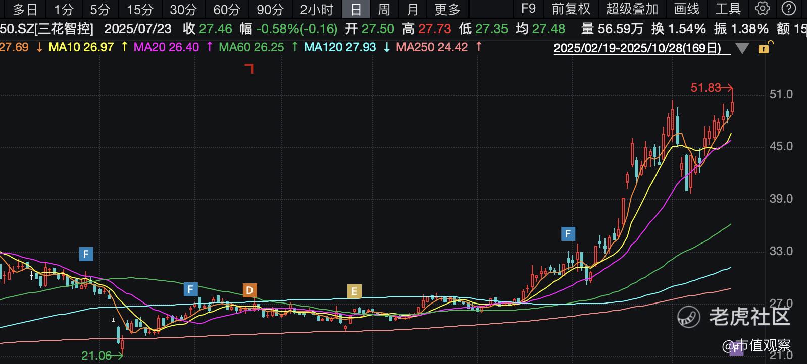 10月28日,三花智控A股股价再度突破历史新高,市值也来到2000亿上方。