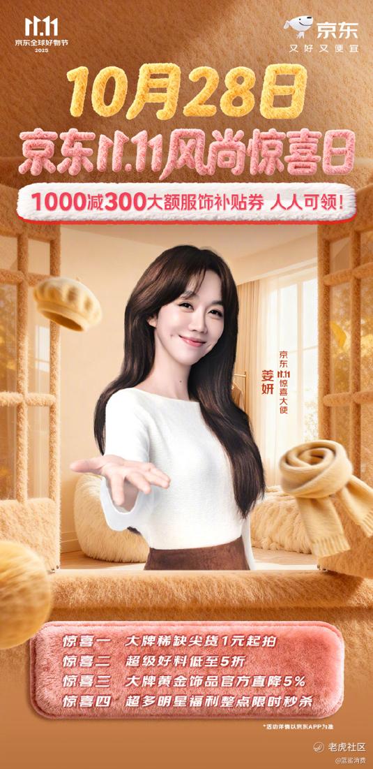京东11.11,又好又便宜。10月28日,京东风尚惊喜日开启,海量潮流时尚单品随心挑,即刻打开京东APP搜索“服饰美妆1111”,一键焕新秋冬造型!