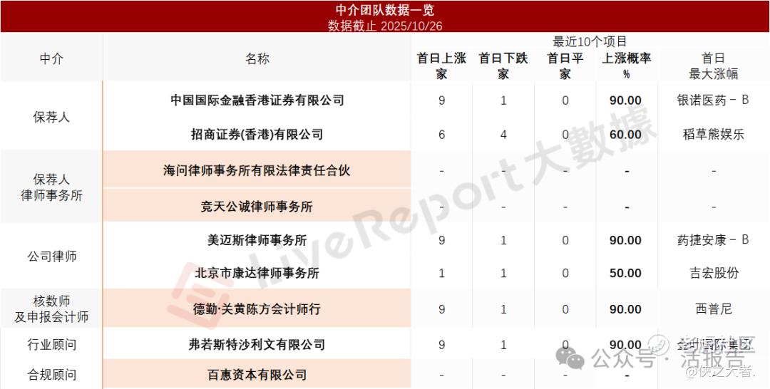 据**大数据统计,江西生物制品中介团队共计9家,其中保荐人2家,近10家保荐项目数据表现较好;公司律师共计2家,综合项目数据表现不一。整体而言中介团队历史数据表现尚可。