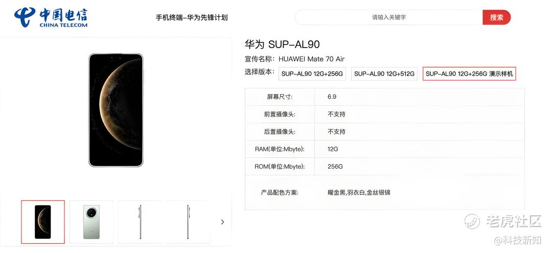 **于10月21日在电信终端产品库上架了新机**Mate 70 Air,该机搭载6.9英寸1920x1200分辨率屏幕,比iPhone Air的6.5英寸机型稍大一些。据悉,**Mate 80将于11月份发布,在这一节点推出Mate 70 Air,被认为是在对标苹果的iPhone Air,而据市场猜测,这款产品极有可能是**首款eSIM机型。