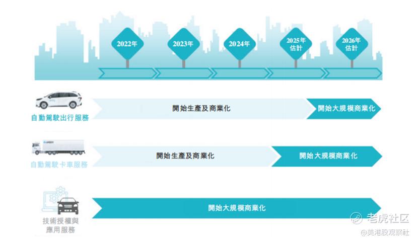 在生态协同与监管资质上,公司构建了覆盖OEM、物流平台、出行网络的动态协作生态:与丰田、北汽、广汽等合作研发量产车型,与中国外运、Uber等拓展货运与出行场景,与腾讯、支付宝等打通用户触达渠道,形成“技术-车辆-场景-用户”的完整生态链。监管层面,公司是中国唯一获得四座一线城市全类型自动驾驶出租车许可的企业,且在卡车领域率先获得跨省测试与商业化许可,监管先发优势为业务扩张提供合规保障。此外,公司商业化路劲清晰,根据规划,自动驾驶出行服务与卡车服务将在2025-2026年逐步进入大规模商业化阶段,技术授权业务则随域控制器量产持续放量,三重业务的协同效应将逐步释放。