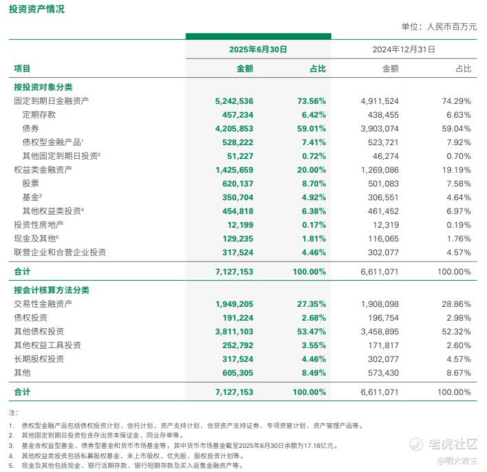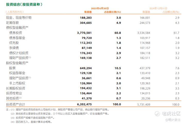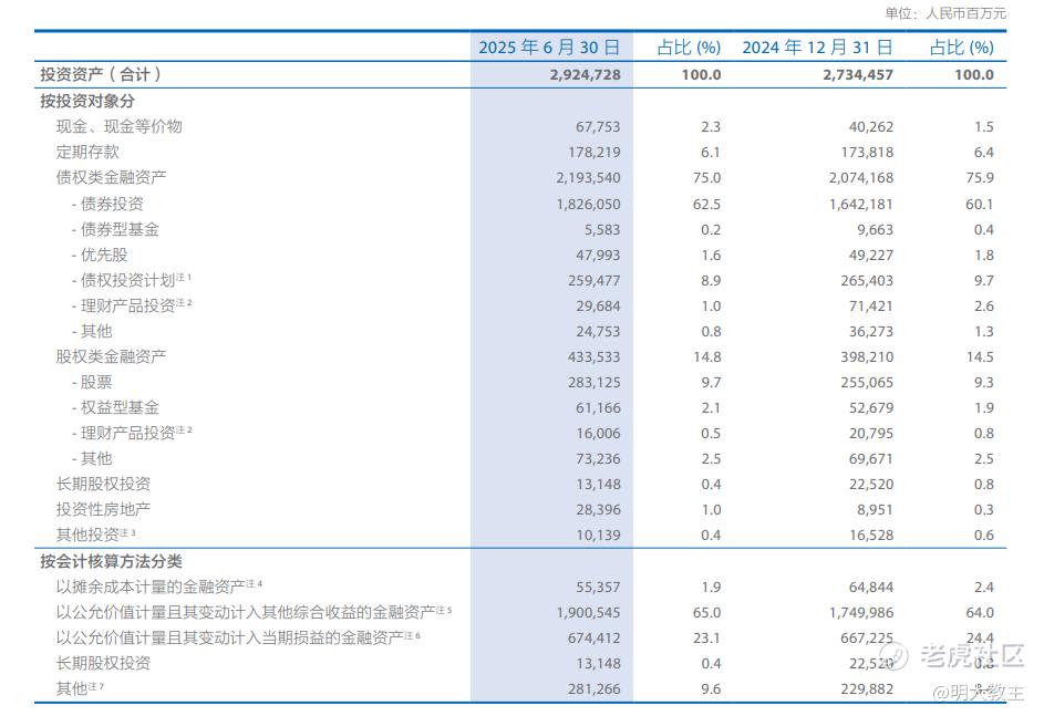 太保的资产结构与中国平安相近,债权类资产占比更高。上半年虽也有增配高股息股票的操作,但变动幅度不如平安大。