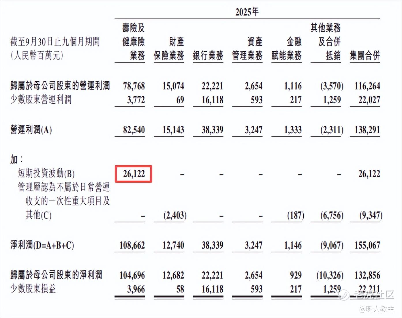 记得有投资者曾问我“寿险及健康险短期投资波动这块为何总是负影响?”其实是平安大多寿险及健康险业务要与长期投资回报率假设对照,不及假设就是负影响,今年平安投资收益率上来了,立马就正贡献261亿。
