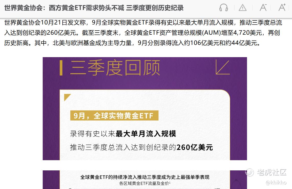 3. ETF资金流入强劲,如IAU、GLD等美股黄金ETF仍获长期资金青睐。 $黄金信托ETF(iShares)(IAU)$ 我一直都在关注, $SPDR黄金ETF(GLD)$ 更是一直都在我的表里躺着。(主要是本人胆子小, 实在不敢操作一只一只的个股,总觉得ETF相对安全一些 [你懂的] )