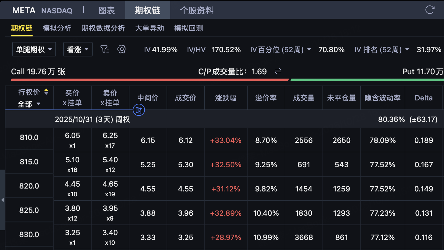 买入 $810 Call(支出权利金 $6.12)