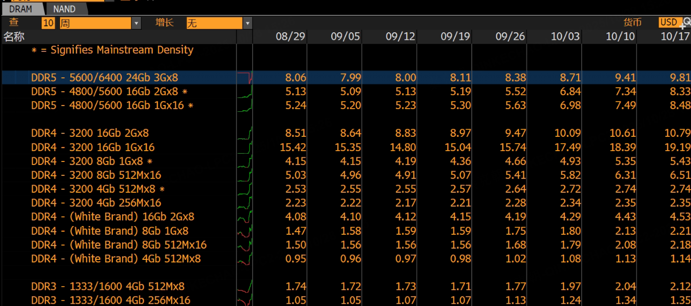 最后,从最新的数据来看,DDR5及DDR4产品价格依然在上涨: