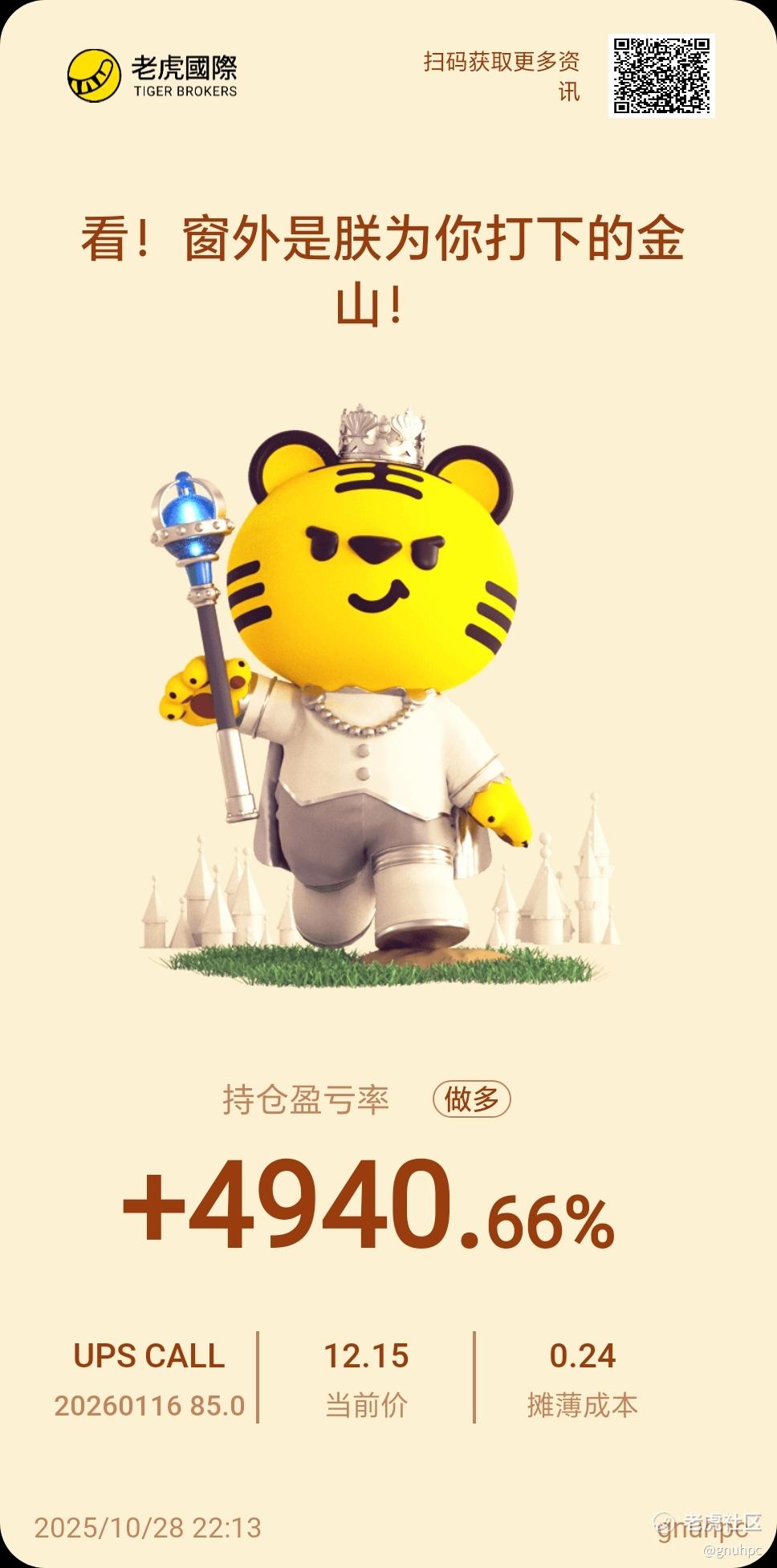 {"i18n":{"language":"zh_CN"},"data":{"magic":2,"id":494117706805696,"tweetId":"494117706805696","gmtCreate":1761660806749,"gmtModify":1761660818343,"author":{"id":4187141694895172,"idStr":"4187141694895172","authorId":4187141694895172,"authorIdStr":"4187141694895172","name":"gnuhpc","avatar":"https://community-static.tradeup.com/news/default-avatar.jpg","vip":1,"userType":1,"introduction":"","boolIsFan":false,"boolIsHead":false,"crmLevel":8,"crmLevelSwitch":0,"individualDisplayBadges":[],"fanSize":41,"starInvestorFlag":true,"fullDisclosureFlag":true,"starInvestorFollowerNum":40,"starInvestorOrderShareNum":156,"userFollowInvestorFlag":false,"orderNotificationFlag":false,"ror":119.09,"showRor":true,"investmentPhilosophy":"专注胜率,不求收益","winRationPercentage":79.069767,"tradeVolumeEst":0},"themes":[{"themeId":"5bfad02ab61749c8bfe6573ac7bbe8a3","categoryId":"b76d3c59fc044df59779c041b25852a6","name":"晒晒更赚钱","type":0,"rnLink":"https://laohu8.com/RN?name=RNTheme&page=/theme/detail&rndata={\"themeId\":5bfad02ab61749c8bfe6573ac7bbe8a3}&rnconfig={\"headerBarHidden\": true}","description":"晒晒你的盈亏单,秀秀虎友们的实力!","image":"https://static.tigerbbs.com/347184265ee0be8c363259951f8033cb"}],"images":[{"img":"https://static.tigerbbs.com/6286188ed44e145cbe0be1bcad8a786e","width":"968","height":"1954"}],"coverImages":[{"img":"https://static.tigerbbs.com/6286188ed44e145cbe0be1bcad8a786e","width":"968","height":"1954"}],"html":"<html><head></head><body><p><a href=\"https://laohu8.com/OPT/UPS 20260116 85.0 CALL\">$UPS 20260116 85.0 CALL$ </a> </p><img src=\"https://static.tigerbbs.com/6286188ed44e145cbe0be1bcad8a786e\" tg-width=\"968\" tg-height=\"1954\"></body></html>","htmlText":"<html><head></head><body><p><a href=\"https://laohu8.com/OPT/UPS 20260116 85.0 CALL\">$UPS 20260116 85.0 CALL$ </a> </p><img src=\"https://static.tigerbbs.com/6286188ed44e145cbe0be1bcad8a786e\" tg-width=\"968\" tg-height=\"1954\"></body></html>","text":"$UPS 20260116 85.0 CALL$","highlighted":1,"essential":1,"paper":1,"likeSize":0,"commentSize":0,"repostSize":0,"favoriteSize":0,"link":"https://laohu8.com/post/494117706805696","repostId":0,"isVote":1,"tweetType":1,"viewCount":70,"commentLimit":10,"likeStatus":false,"favoriteStatus":false,"reportStatus":false,"symbols":["UPS","UPS 20260116 85.0 CALL"],"verified":2,"subType":0,"readableState":1,"langContent":"EN","currentLanguage":"EN","warmUpFlag":false,"orderFlag":false,"shareable":true,"causeOfNotShareable":"","featuresForAnalytics":["晒单贴"],"commentAndTweetFlag":false,"andRepostAutoSelectedFlag":false,"upFlag":false,"length":21,"optionInvolvedFlag":true,"xxTargetLangEnum":"ORIG"},"commentList":[],"hasMoreComment":false,"orderType":2}