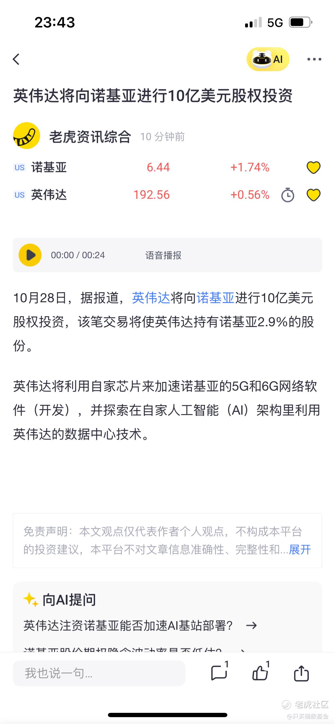 英伟达投资10亿美元入股,多方面战略合作,目前挂单价来算已经涨了17%,等开盘