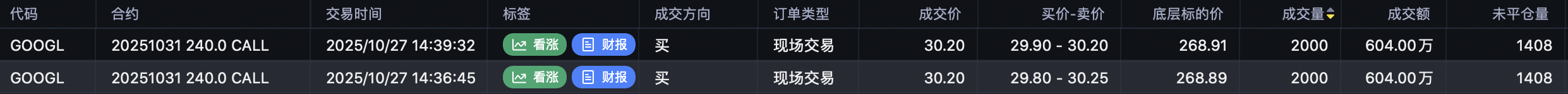 本周有大单买入末日价内call $GOOGL 20251031 240.0 CALL$ ,一般这种是预期不太看涨的做法。