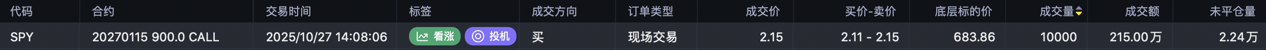 甚至大单买入了远期900call $SPY 20270115 900.0 CALL$ ,开仓1万手。