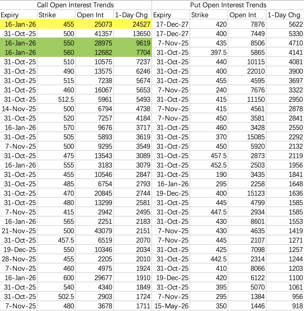 另外1月到期1月到期550和560看涨都有卖出大单$TSLA 20260116 550.0 CALL$ $TSLA 20260116 560.0 CALL$ 。