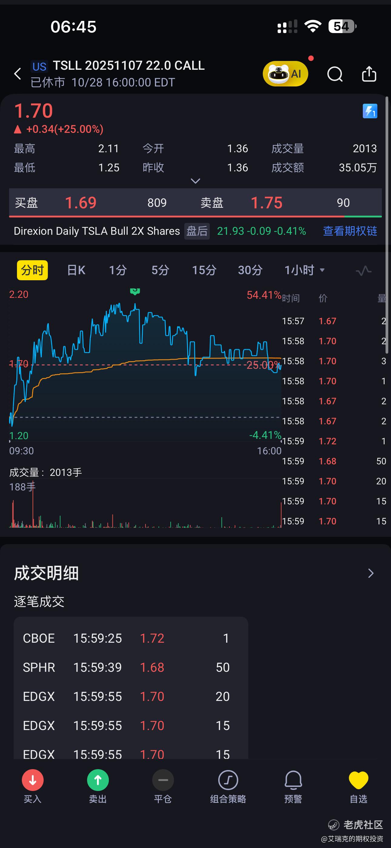 $Direxion Bull(TSLL)$ $TSLL 20251107 22.0 CALL$ $纳指三倍做多ETF(TQQQ)$ $TQQQ 20251107 120.0 CALL$
