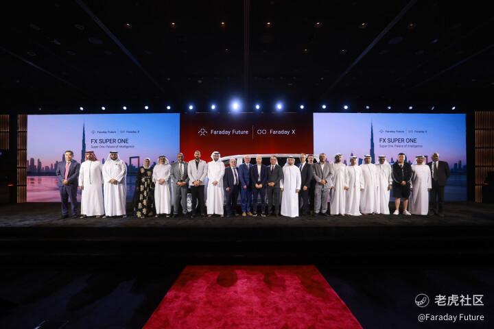 迪拜皇室成员代表、阿吉曼皇室代表、卡塔尔政府代表,FF阿联酋投资人Shiekh Abudullah,以及FF、FX Par代表等来自各行业的重要嘉宾与FF公司高管一同见证FX Super One的上市时刻。