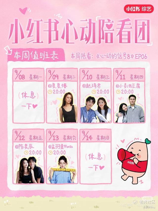 在《心动的信号8》播出期间,小红书官方策划了心动陪看团,每周安排陪看嘉宾进行直播陪看,其中热度最高的是奇闻cp,最高在线人数达到了1.5w。这让小红书化身为「野生观察室」,用户在这里可以看到更多元的观点和表达,也可以表达出自己的立场偏好。而这些「观察室」片段,对于其他用户而言又是新鲜的自媒体素材,既可以截图自己认同的观点发出来盖章「嘴替」,也可以发表不同观点。