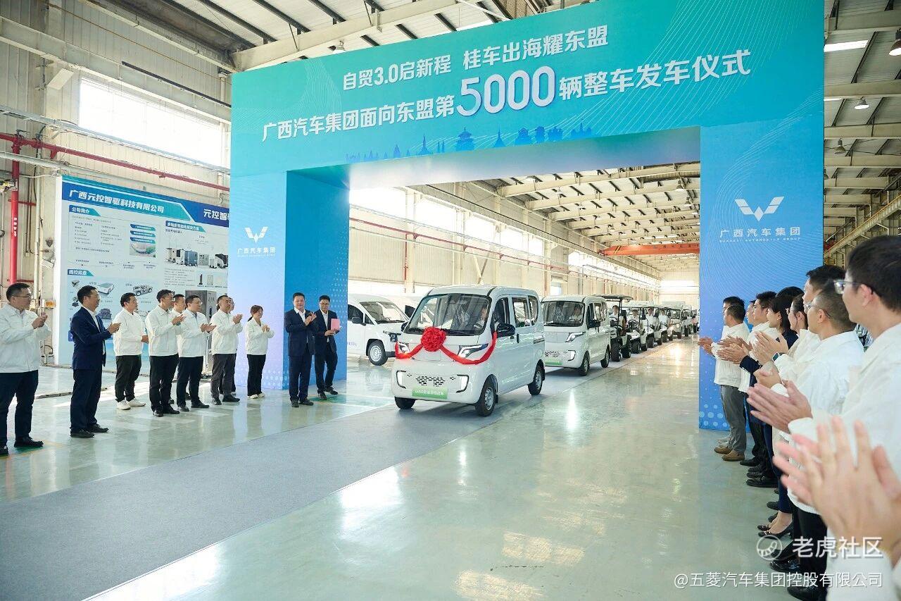 自贸3.0启新程,桂车出海耀东盟!10月27日,五菱汽车母公司广西汽车集团举行面向东盟第5000辆整车发车仪式,彰显集团在自贸区3.0版政策背景下,产业国际化发展的新成果!