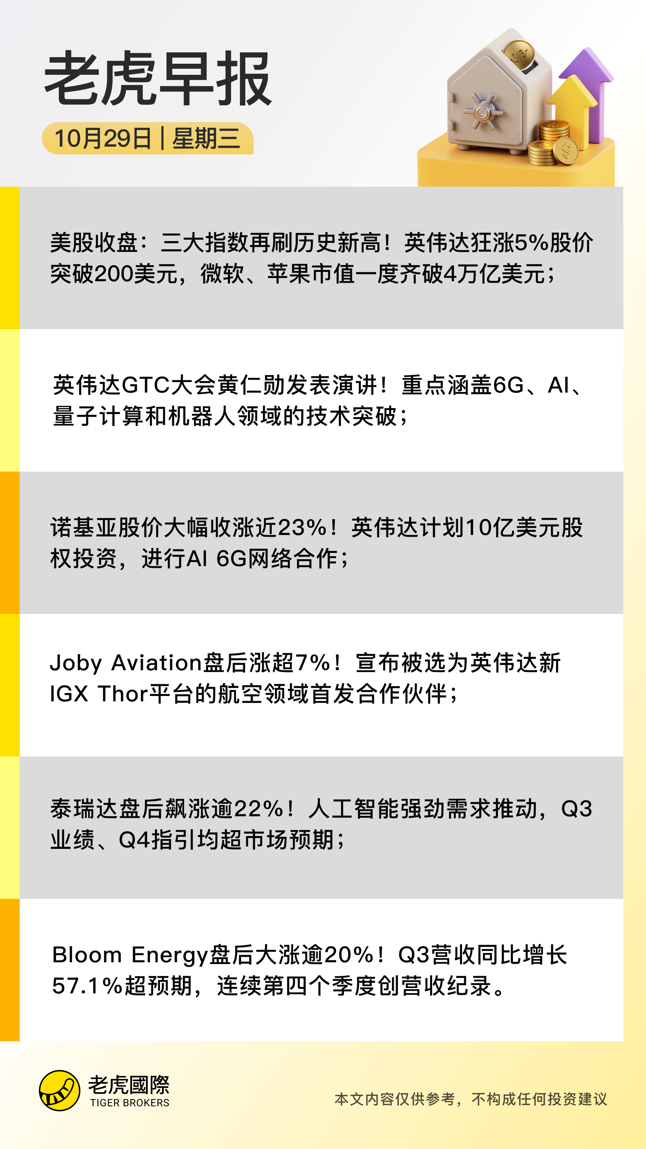 🎁【10月29日】GTC大会点燃行情,英伟达领涨创新高,后续会回调吗?