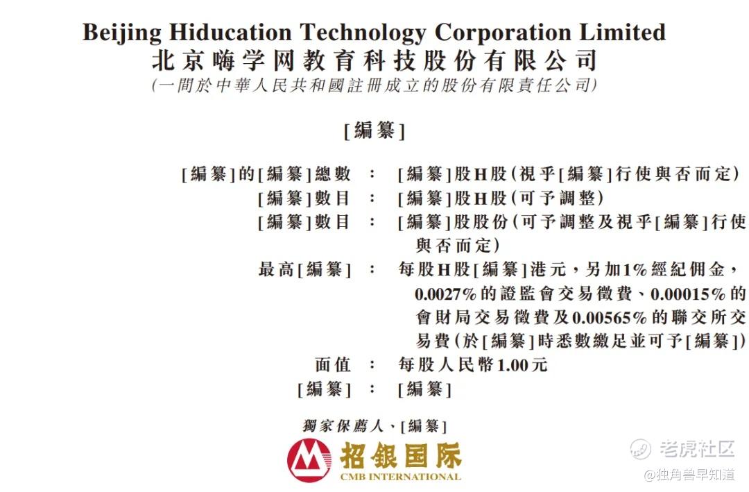 据港交所10月28日披露,北京嗨学网教育科技股份有限公司向港交所主板提交上市申请书,招银国际为独家保荐人。 $北京嗨学网教育科技股份有限公司(临时代码)(91146)$