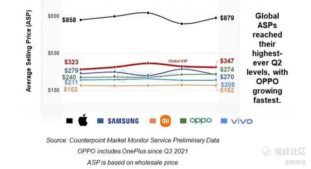 据Counterpoint Research最新数据,OPPO的平均售价(ASP)跃居全球第二,仅次于苹果。