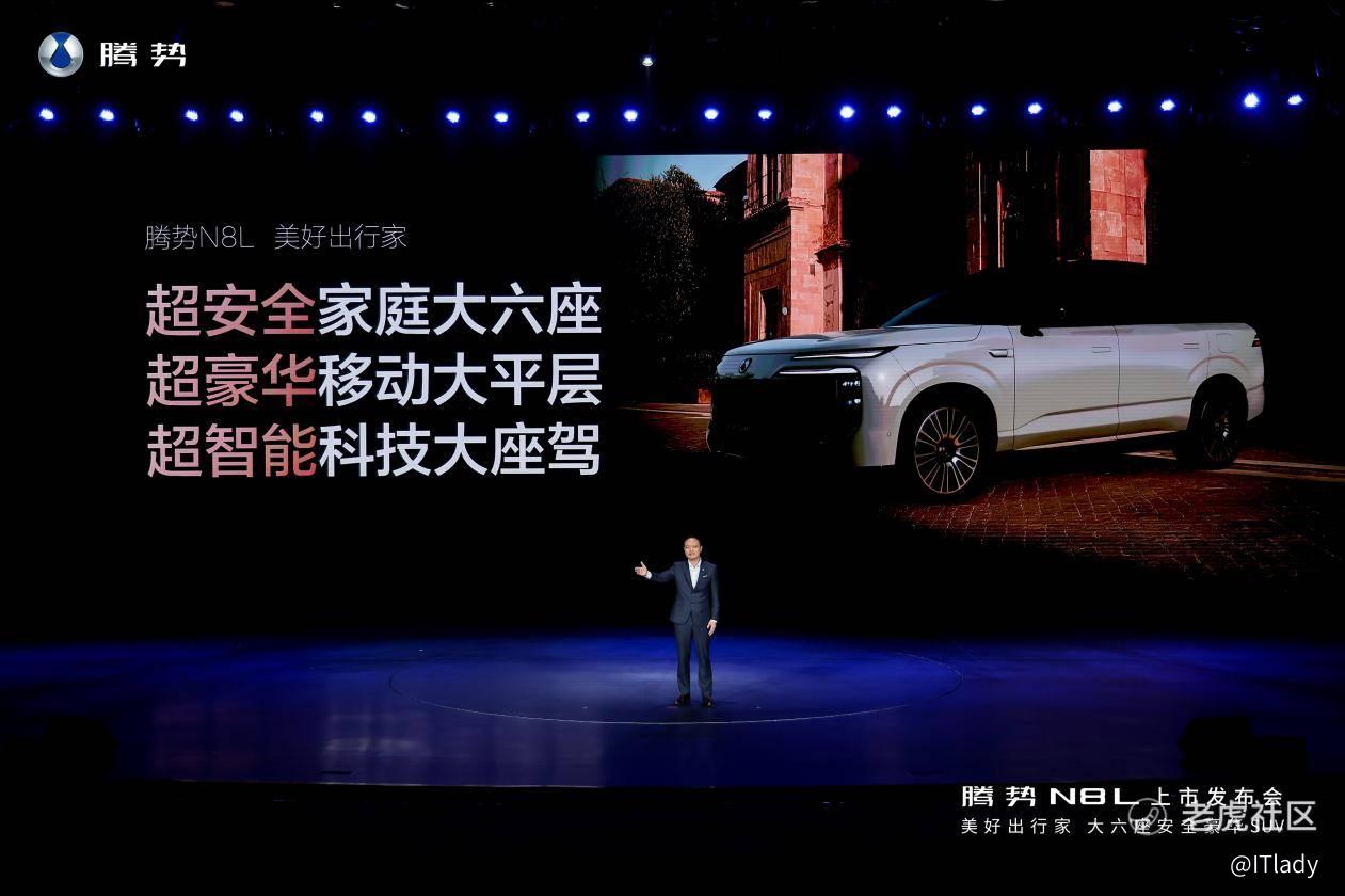 腾势总经理李慧用三句话总结N8L,就是:超安全家庭大六座、超豪华移动大平层、超智能科技大座驾,以硬核技术实力重塑家庭大六座豪华SUV新标准,与每个热爱生活的家庭一起奔赴美好。