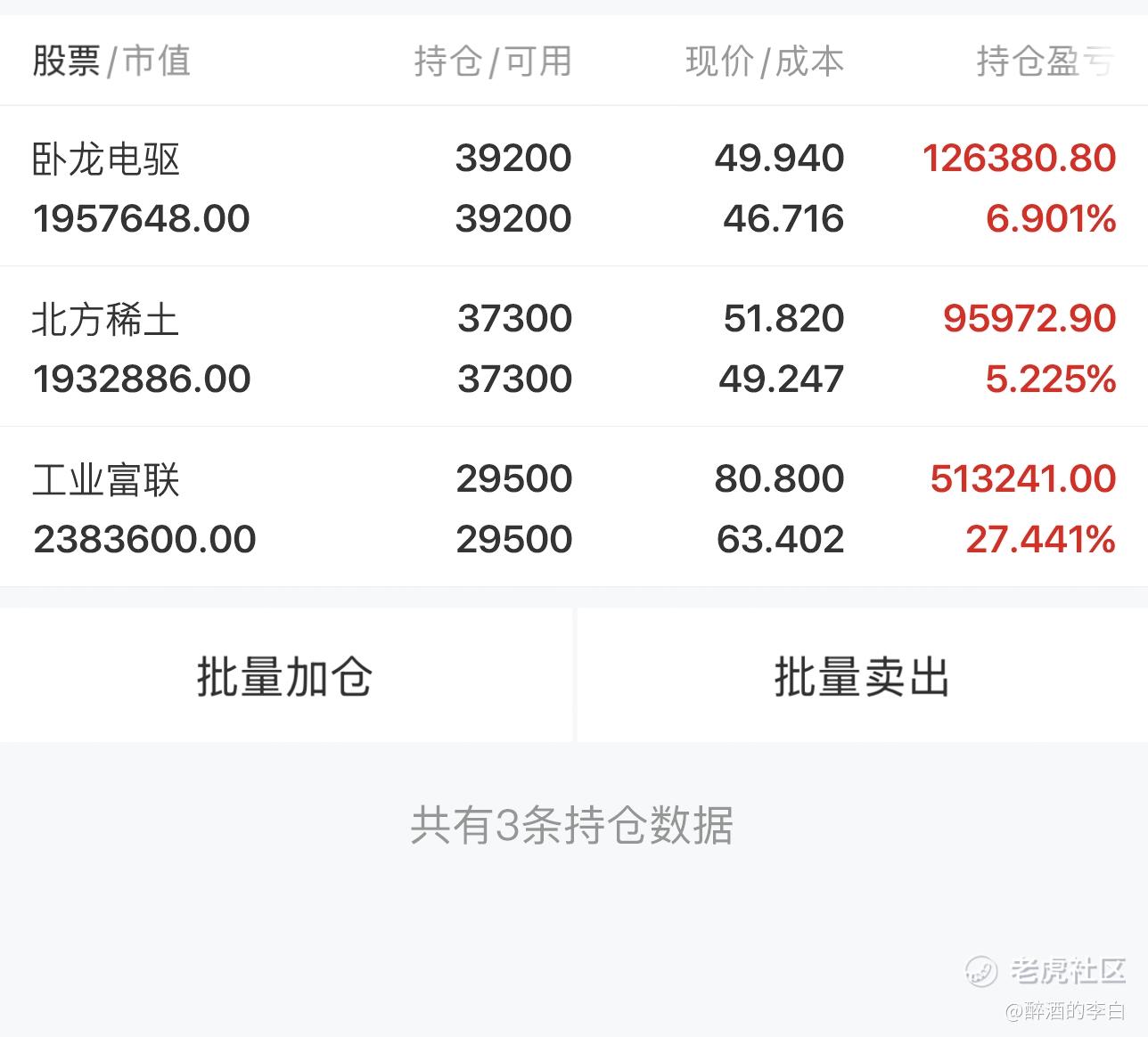从指数来看,行情其实已经启动了,大盘突破箱体震荡,站上了新的平台,很多散户觉得现在行情并没有好到哪里去,主要原因就是主线没有确定下来,主力还在各个方向中轮动试盘,所以才会有现在引而不发的局面,不过大家可以换个思路想想,正是现在行情还没全面爆发,才是真正有机可乘进行低位布局的好时候,现在埋伏下来等后来人抬轿,不必到时候急匆匆去追高抢食好的多?$工业富联(601138)$ $北方稀土(600111)$ $卧龙电驱(600580)$