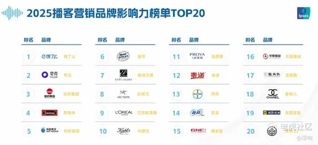 科技互联网品牌的情况稍复杂,短期转化效果不好量化,不过长期目标很清晰:通过自然植入和长周期投放,建立记忆度、好感度,自然沉淀用户。根据益普索的《报告》,2025播客营销品牌影响力TOP 20榜单中,饿了么、夸克、蚂蚁分别排名第1、2、5名,播客多元的用户群体,以及用户对新科技、互联网行业更高的好感度,有利于互联网、科技品牌的深度传播。