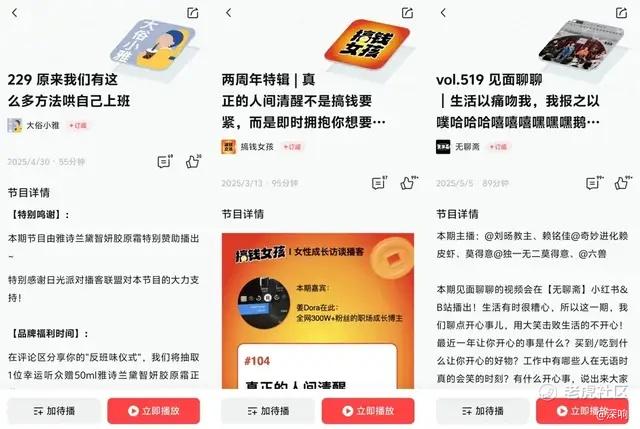 比如喜马拉雅主播“你好_竹子” 的《嗨咻》栏目,聚焦新手宝妈的日常与感悟,真实又鲜活的分享戳中了无数听众,多期节目播放量突破百万,成为很多宝妈的 “情绪寄托”,这种陪伴感是播客不可替代的魅力之一。