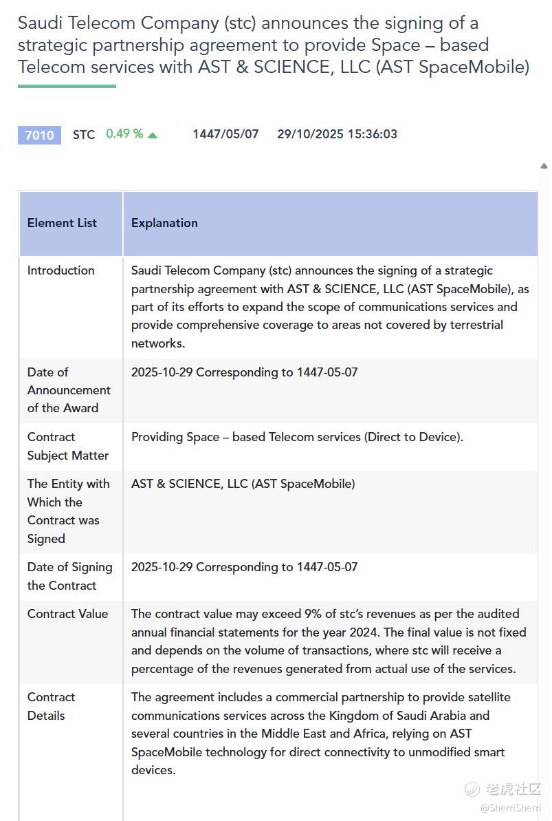 今日,沙特阿拉伯电信公司(stc)与 $AST SpaceMobile(ASTS)$ 签署战略合作协议。