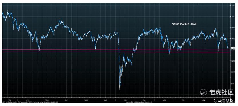 BIZD这个ETF旨在复制 MVIS 美国商业发展公司指数。所谓的商业发展公司(BDCs),它们本质上是封闭式投资基金,专注向中小企业(SMEs)放贷。如果HYG和BIZD走势太难看,我们也不妨暂时减仓以图心理安慰。如果HYG和BIZD继续走弱,那就说明“蟑螂”可能不止一只。到那时,适当减仓、留点现金,也许比盲目加仓更聪明。