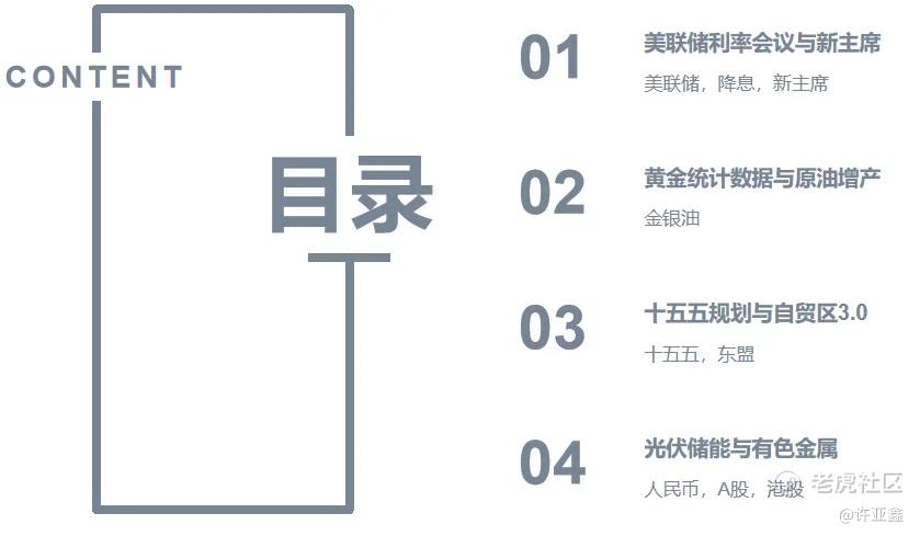 晚上的直播课,我分别从“美联储利率会议与新主席”,“黄金统计数据与原油增产”,“十五五规划与自贸区3.0”,“光伏储能与有色金属”四个方面解读了基本面的一些信息,并结合美联储,降息,新主席,金银油,十五五,东盟,人民币,A股,港股等给出了接下来的布局思路。