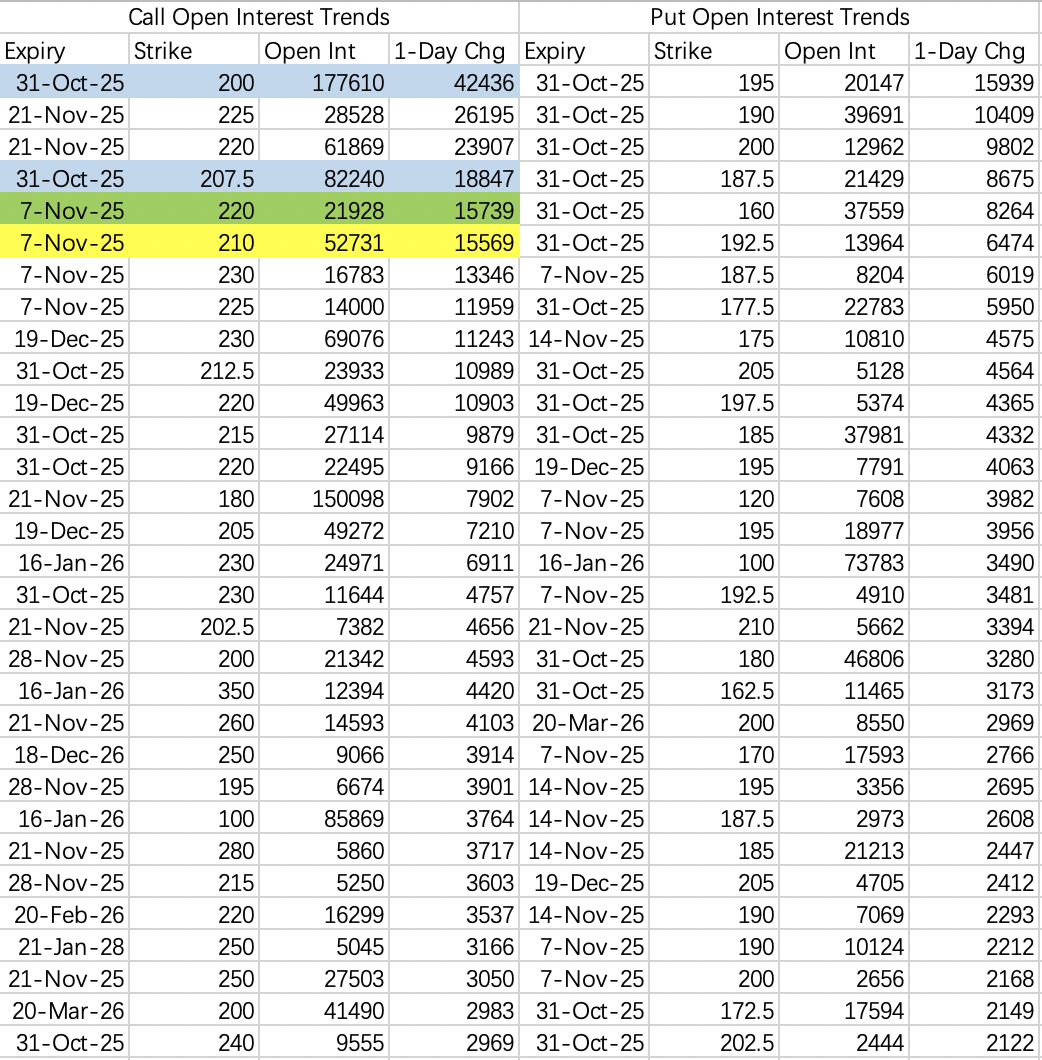 接下来预计会在195~220之间震荡。可以逢低sell put $NVDA 20251031 195.0 PUT$