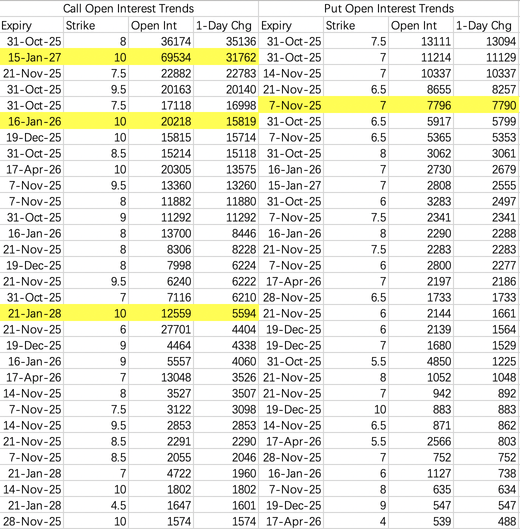 但从put开仓情况来看,股价还会在7块钱附近震荡一下 $NOK 20251121 7.0 PUT$