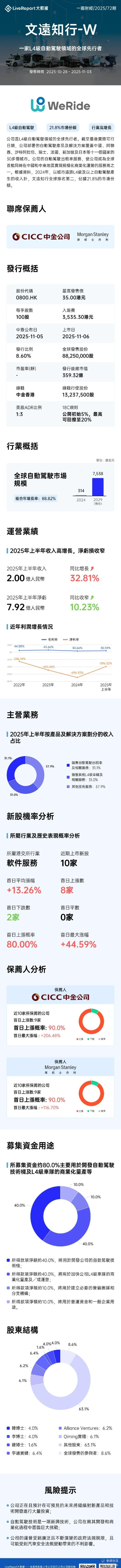 文远知行-W(0800.HK)开启招股,招股日期为2025年10月28日至2025年11月3日,并预计于2025年11月6日在港交所挂牌上市。