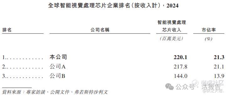 公司于2024年在全球智能视觉处理芯片市场中,以21.3%的市场份额位列全球营收第一。