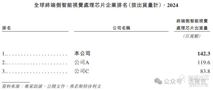 公司于2024年在全球端侧智能视觉处理芯片市场中,按出货量计位列全球第一。