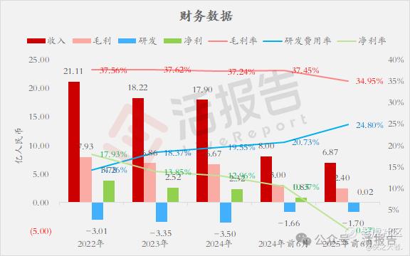 公司是全球领先的智能视觉处理芯片供货商,2025年上半年收入6.87亿元,净利润182.6万元,研发费用率近25%。
