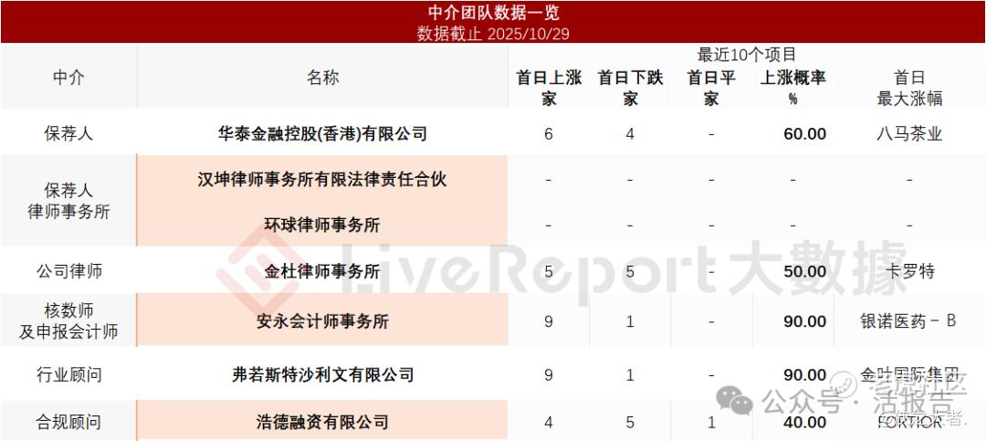 据**大数据统计,富瀚微中介团队共计7家,其中保荐人独1家,近10家保荐项目数据整体表现普通;公司律师共计1家,综合项目数据不足。整体而言中介团队历史数据表现普通。