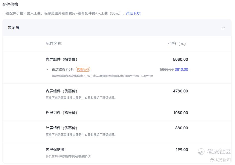 图/某品牌折叠手机换屏费用