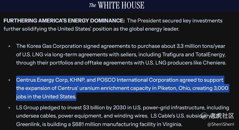 $Centrus Energy Corp.(LEU)$ 再次宣布获得韩国方面对产能扩张的承诺支持。