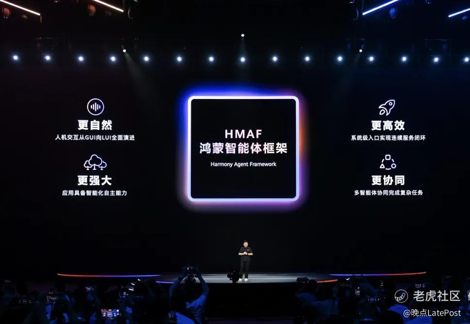 今年 6 月的**开发者大会上,**发布鸿蒙智能体框架(HMAF)。据介绍,这个框架集成了鸿蒙 Agent 通信协议、鸿蒙意图框架以及鸿蒙 Agent Kit,给所有智能体定统一 “语言和接口”。